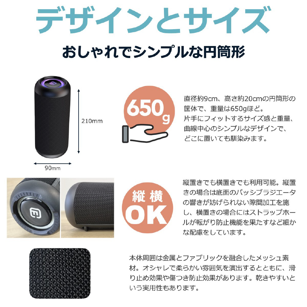 | 付属品 | USBタイプC-Cケーブル、AUXケーブル、専用ストラップ、取扱説明書(日本語/英語) |