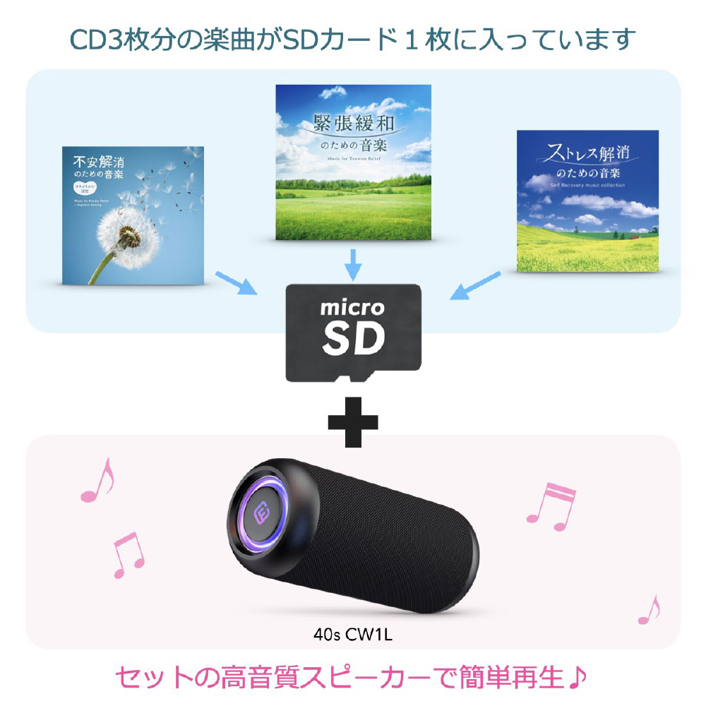 40sの高音質スピーカーとDellaのBGM音源のコラボ商品。心身をリラックスさせる楽曲入SDカード同梱。