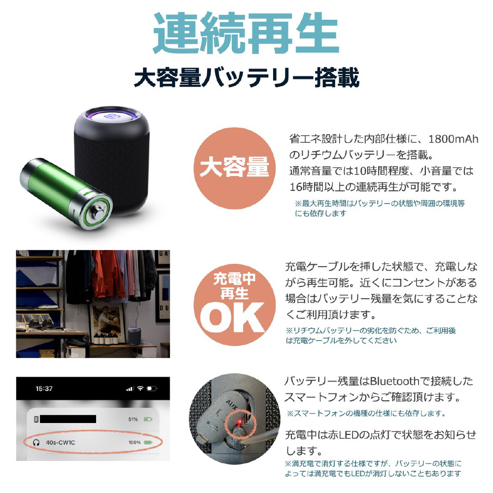 | 仕様3 | 充電しながら利用可能 |