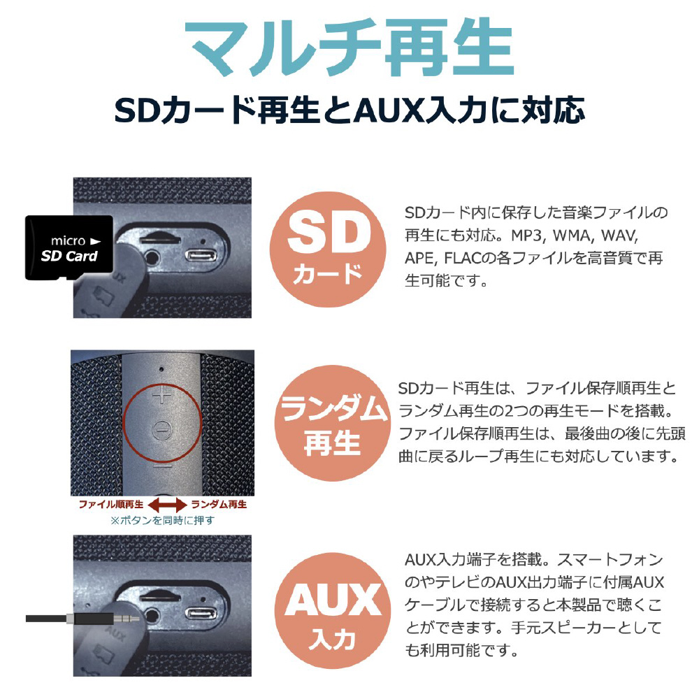 | 入力プラグ/入力端子 | AUX、MicroSDスロット |