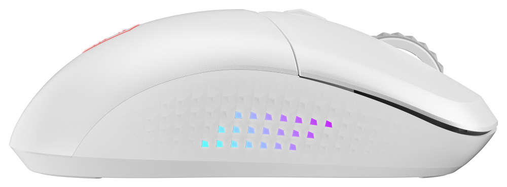 無線・Bluetooth・有線接続に対応。65gの軽量設計と左右対称デザインを採用し、サイドグリップにRGB LEDを装備したゲーミングマウス