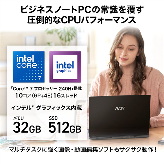| CPU | Core 7 240H(Pコア 2.5GHz/Eコア 1.8GHz) |