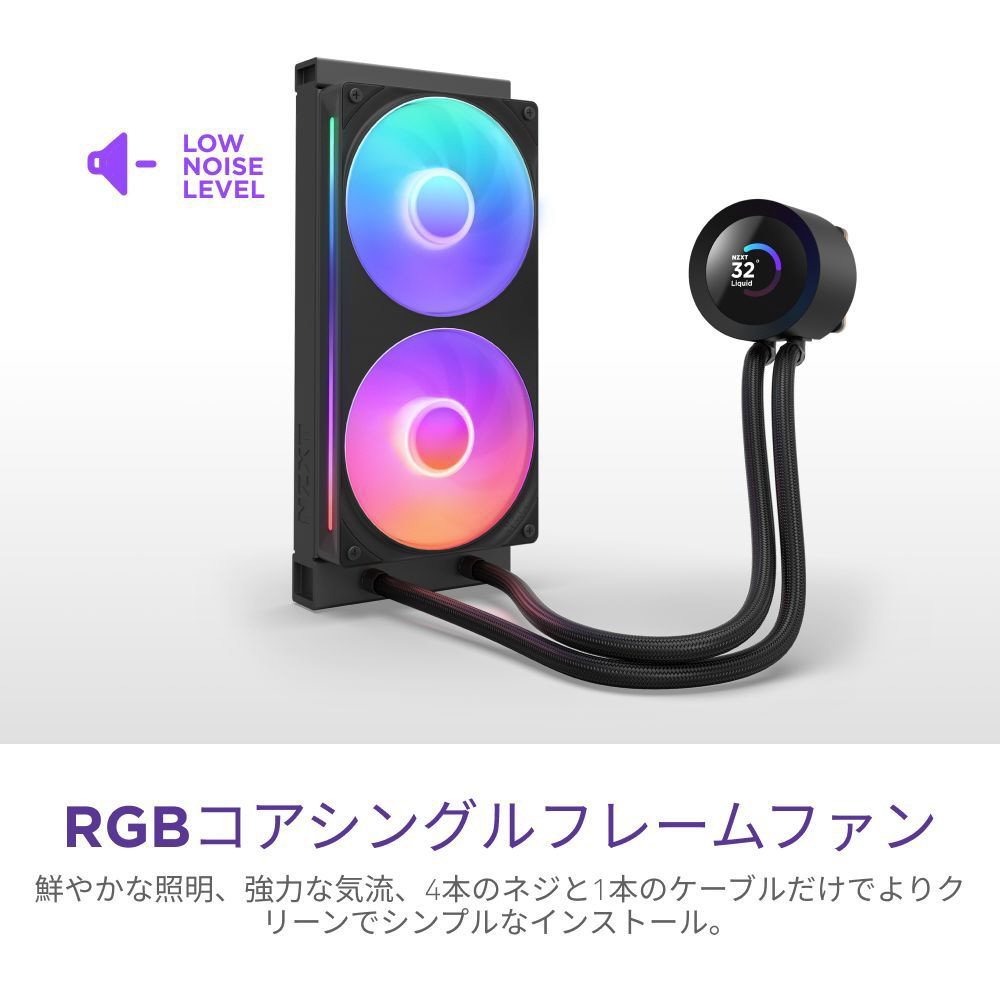 Kraken Plus RGB AIO液体クーラーは、カスタム設計されたNZXTタービンポンプ、LCDディスプレイ、およびRGBファンを備えたカスタマイズ可能な冷却を提供します。
