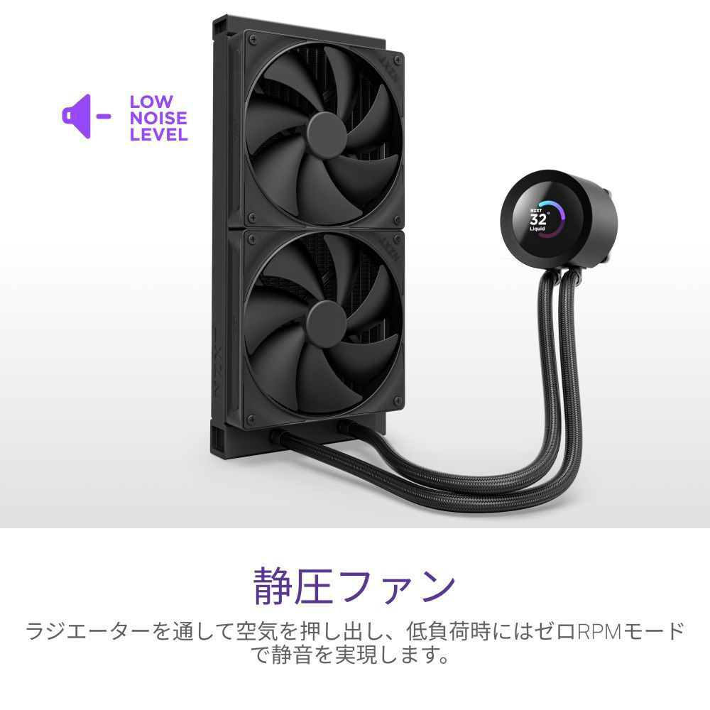 Kraken Plus AIO液体クーラーは、効率的でカスタマイズ可能な冷却のためにカスタム設計されたNZXTタービンポンプとLCDディスプレイを備えています。