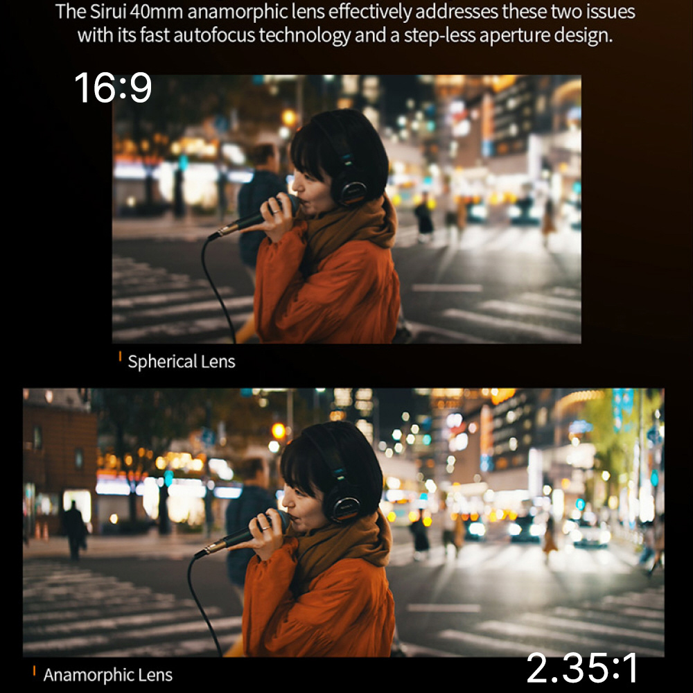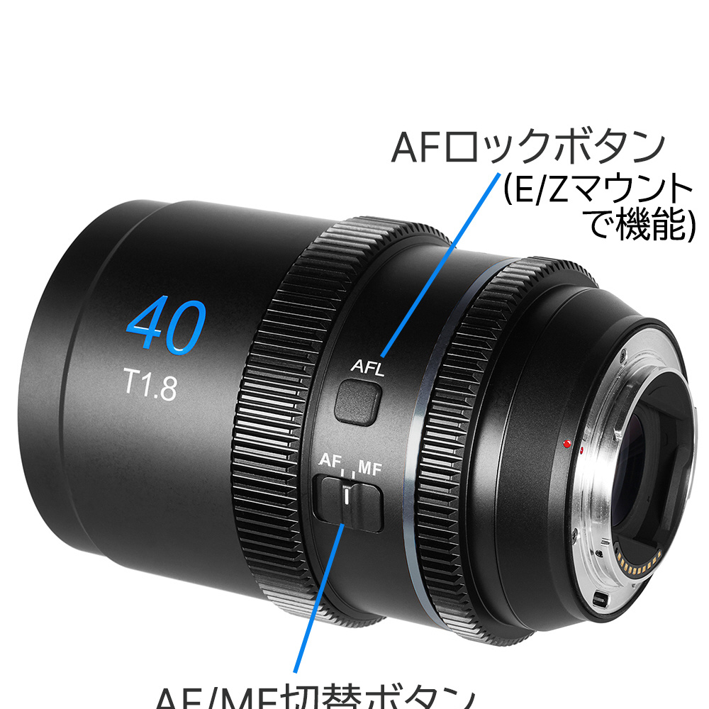 オートフォーカスアナモルフィックレンズ(Leica Lマウント/ナチュラルフレア) [T1.8 / S35/APS-C対応 / 焦点距離40mm] 2.35:1アスペクト比のシネマティックな視覚体験を提供するAF搭載アナモルフィックレンズ