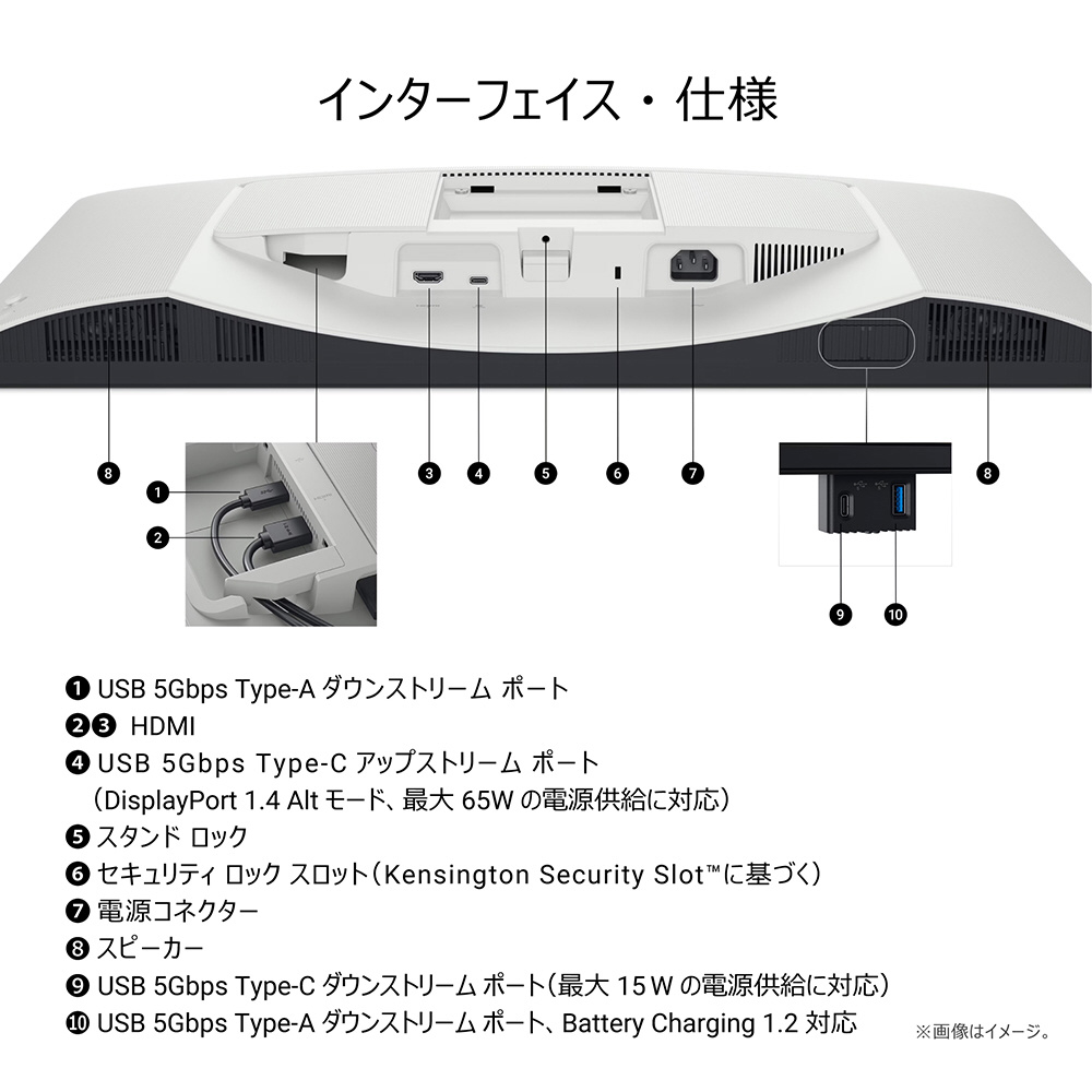 | インターフェイス | USB-C×1 (DisplayPort 1.4 Altモード、Power Delivery 最大65W) 、 HDMI×2( HDCP 1.4 & 2.3、FRL、HDR、VRR をサポート) |