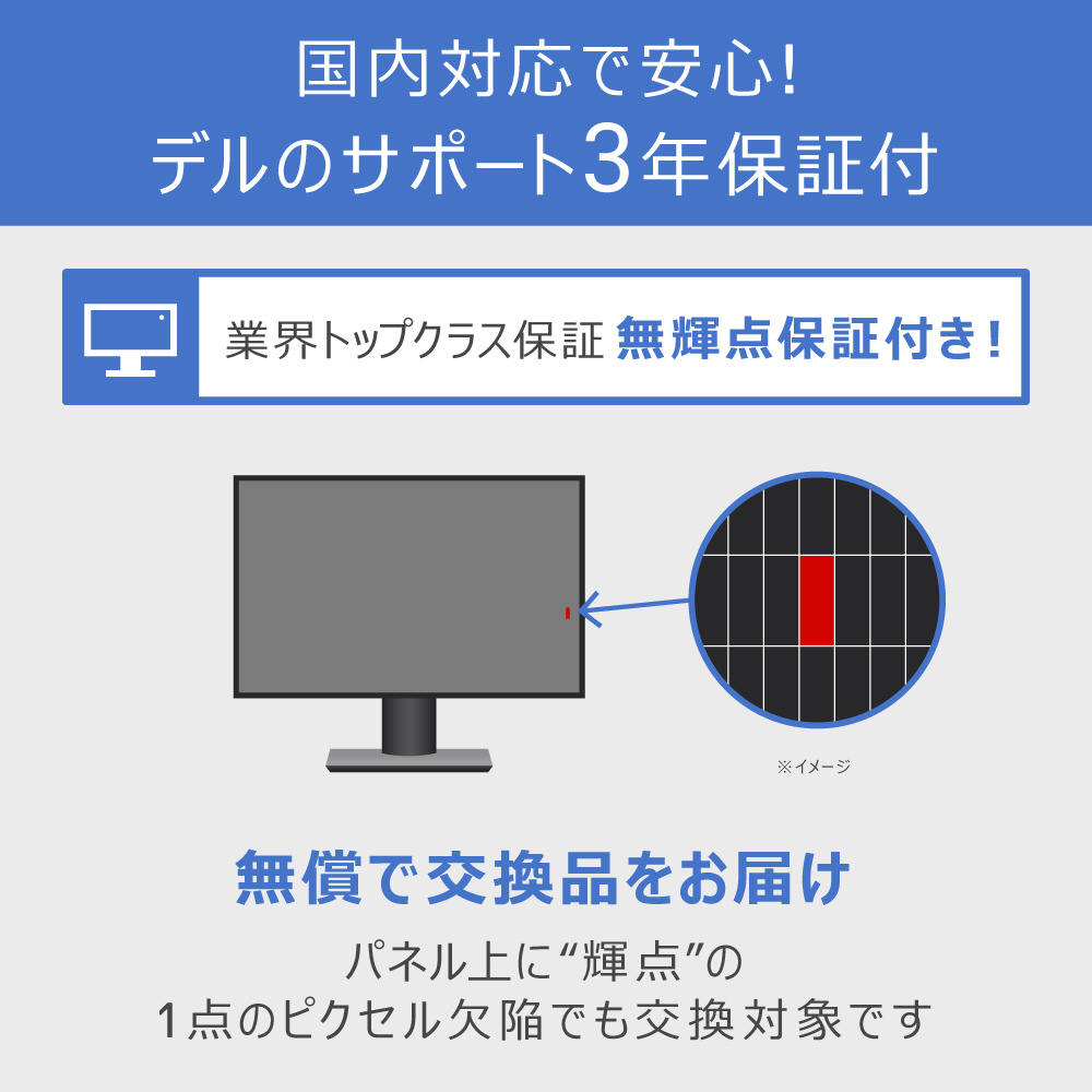 24時間365日電話サポート対応、3年間無輝点交換・良品先出しサービスで長期間安心してご使用頂けます。