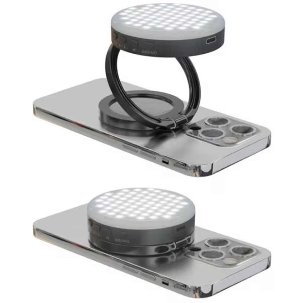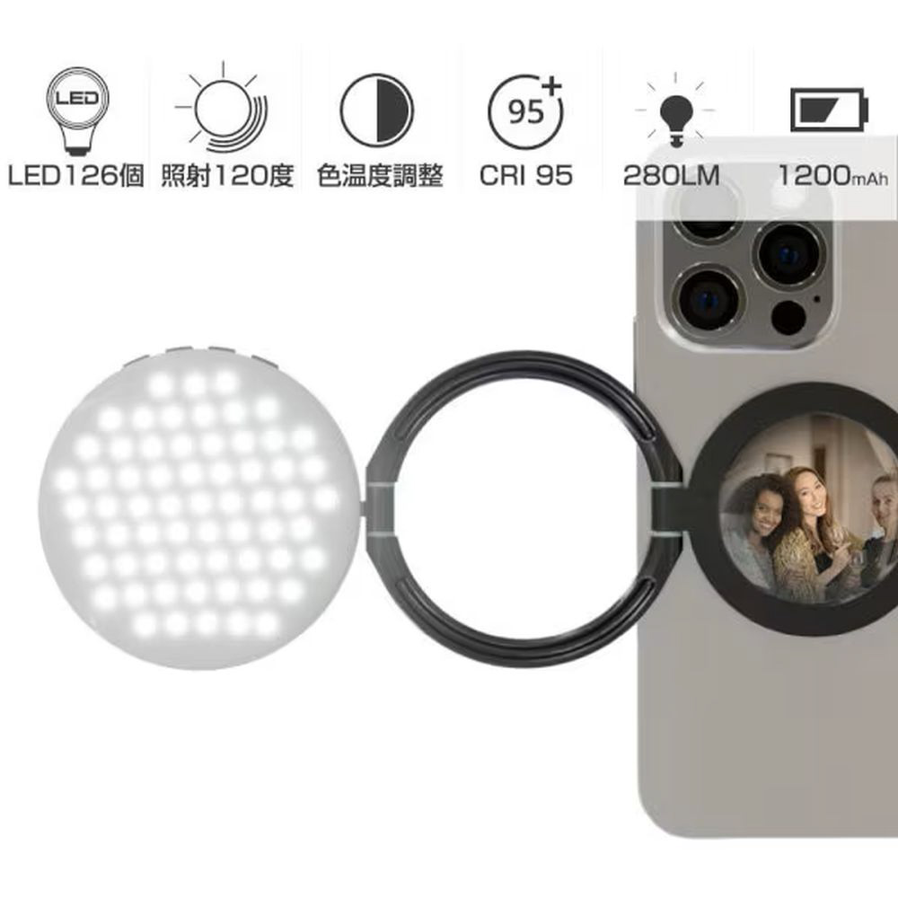 スマホ撮影用 LEDライト magasafe対応 「美顔ライト」 MS-SLIGHT1 ブラック MS-SLIGHT1