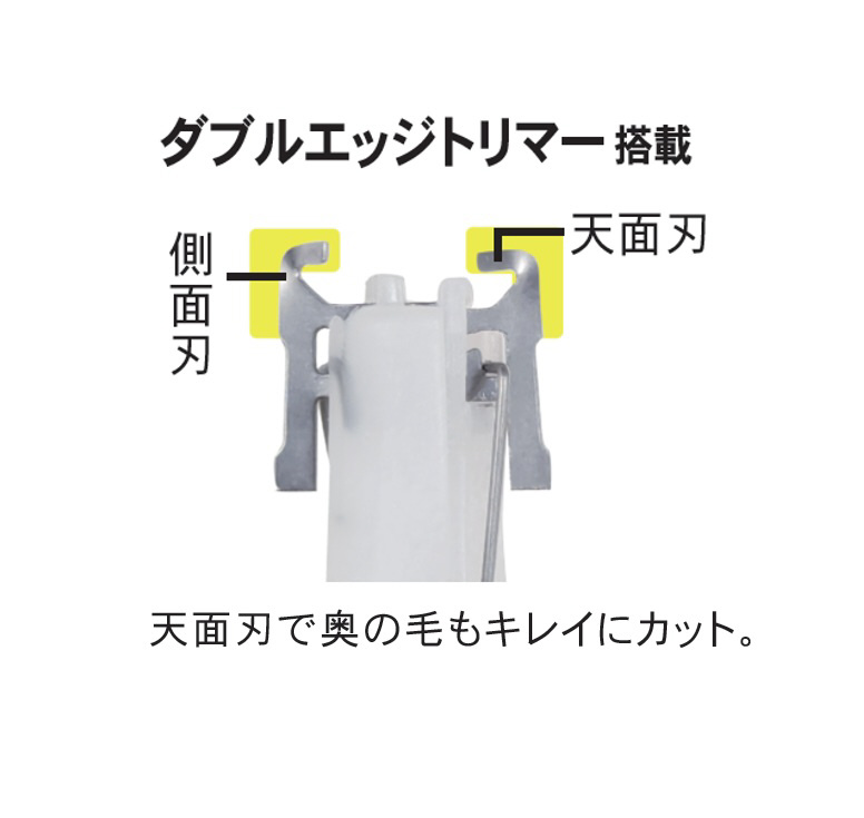 側面だけではなく天面にも刃がある「ダブルエッジトリマー」を採用。