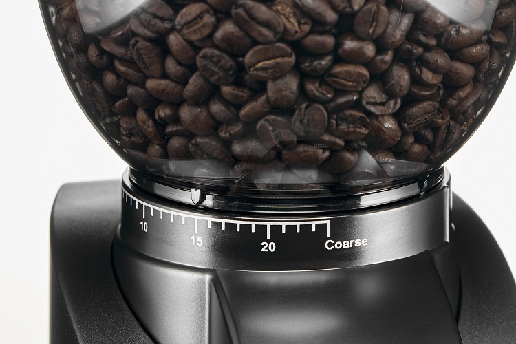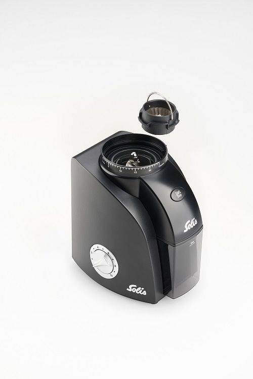 静電気発生軽減装置搭載のソリスのコーヒーグラインダー。コーン式の本格派でアロマ香る豆が挽ける。エスプレソッソからフィルターコーヒーまで対応の粒度設定可能。