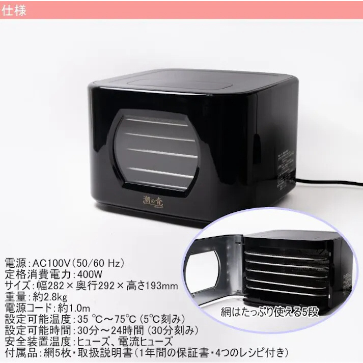 付属品:網5枚・取扱説明書(1年間の保証書・4つのレシピ付き)