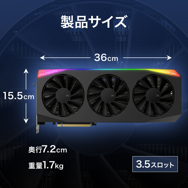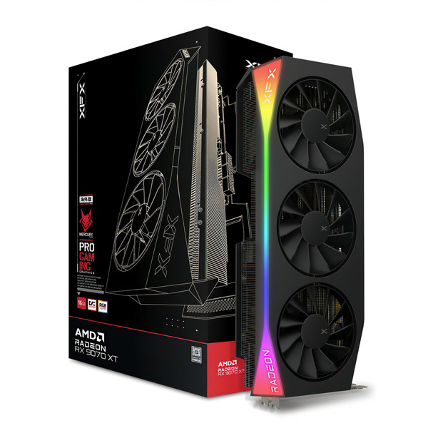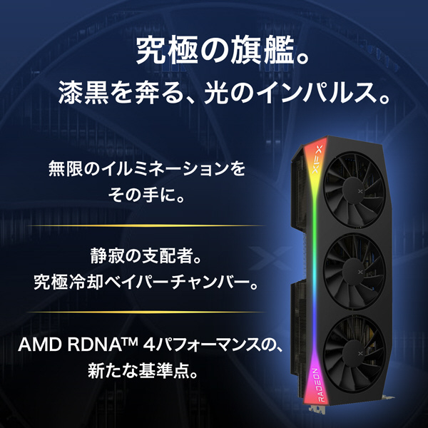 AMD Radeon RX 9070 XT搭載。16GBメモリとトリプルファン、RGBを搭載。オーバークロック仕様のグラフィックボード 。