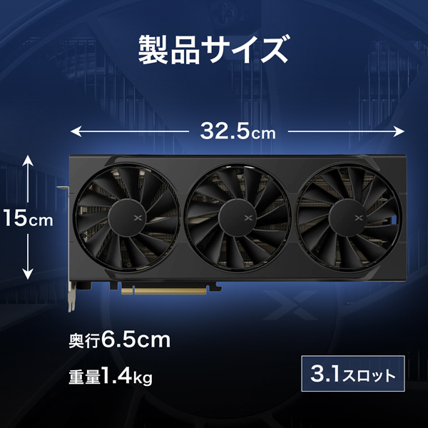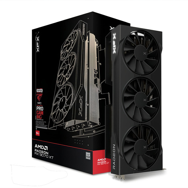 AMD Radeon RX 9070 XT搭載。16GBメモリとトリプルファン搭載のグラフィックボード。