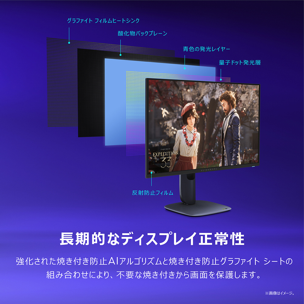 4K解像度、驚異的な色精度、Dolby Vision HDRを備え、Alienware史上最高のピクセル密度を実現した166 PPIのQD-OLEDモニターで、こころゆくまで新しい世界に没入してください。