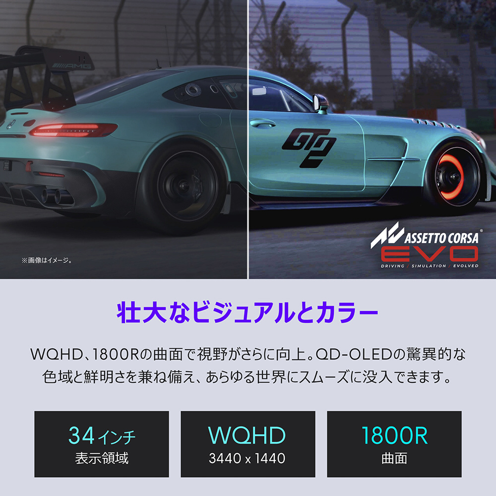 より高速で印象的な新デザインを採用した34インチのウルトラワイドQD-OLEDモニターで、比類のない没入感を体感してください。