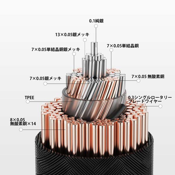 無酸素銅&銀&単結晶銅トリプルハイブリッドケーブル
