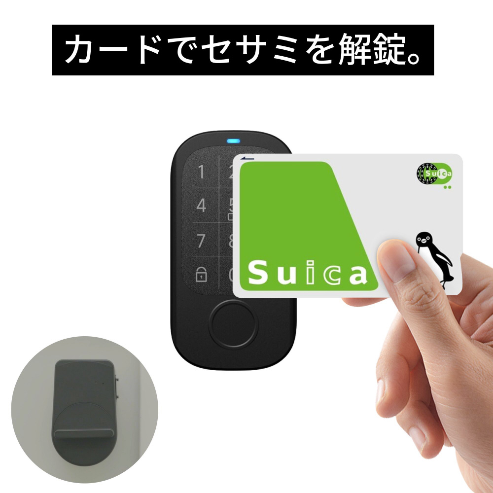 【カードリーダー/最大1000個登録可能】スマホの登録だけでなく、FeliCa(Suica、PASMOなど)やMIFARE搭載のカードが使用可能。NFCタグもカード代わりに使用可能。最大101個まで登録が可能。 登録後の削除も簡単。