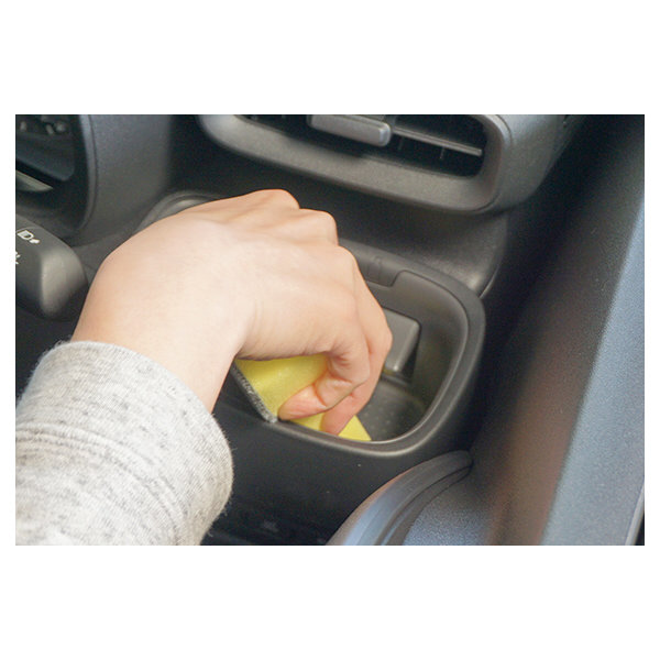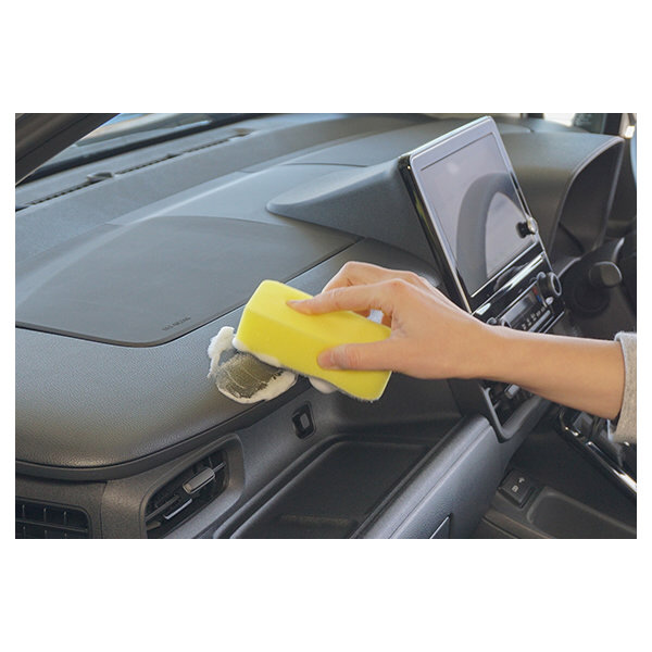 ●ドアパネルや革シートのシボの奥に入り込んだ日焼け止めや土、砂汚れ・飲みこぼしなどの落ちにくい汚れをスッキリ取り除く、車内の凹凸部専用ブラシ。
