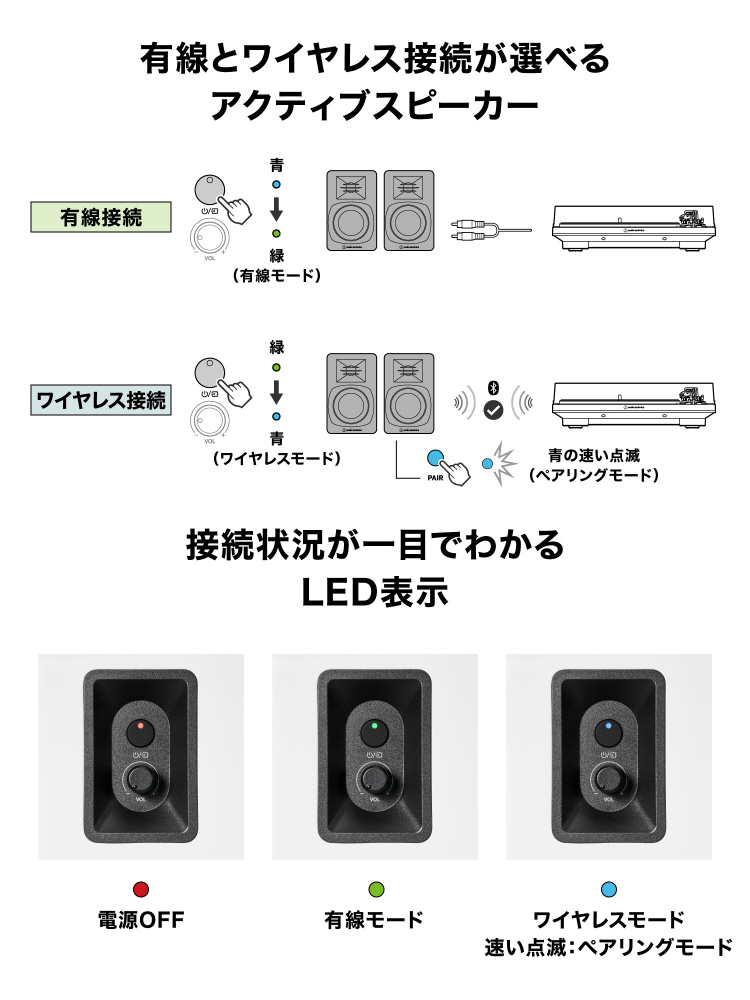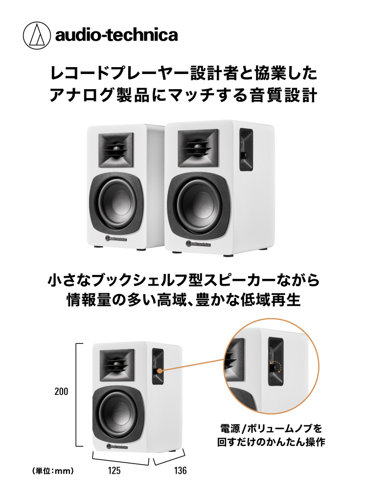 パワードブックシェルフスピーカー ホワイト AT-SP3X WH [Bluetooth対応]
