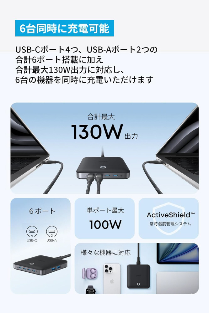 Anker Nano Charger (130W 6 Ports) ブラック A2155N11 A2155N11 [6ポート /USB Power Delivery対応]