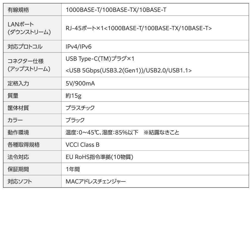 「1Gbps USB Type-C 有線LANアダプター」