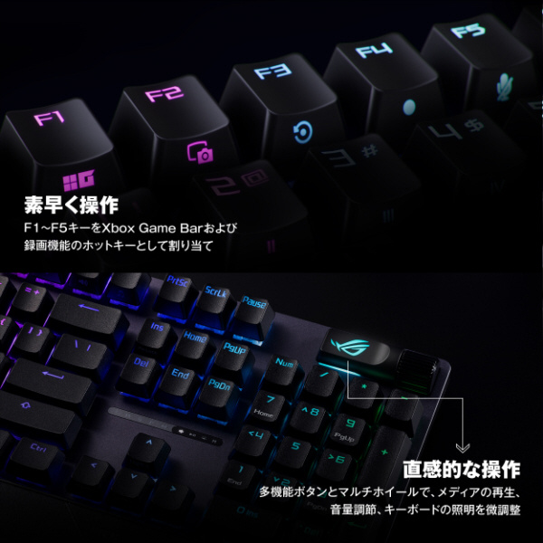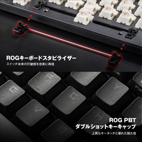 ROG Strix Scope II Xゲーミングキーボード - ホットスワップ対応ROG NXメカニカルスイッチV2搭載、消音フォーム、PBTダブルショットのキーキャップまたはUVコーティングABSキーキャップ、ストリーミングホットキー、多機能コントロール、3段階の角度調整、リストレスト