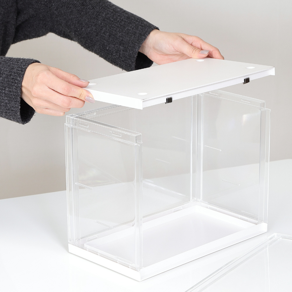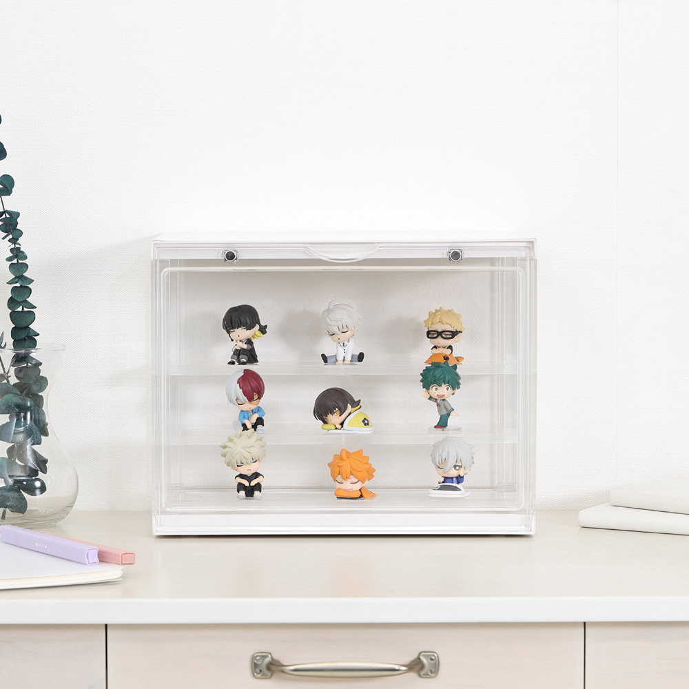どの角度も美しく見せるひな壇式!スタッキングできるコレクションケースhina