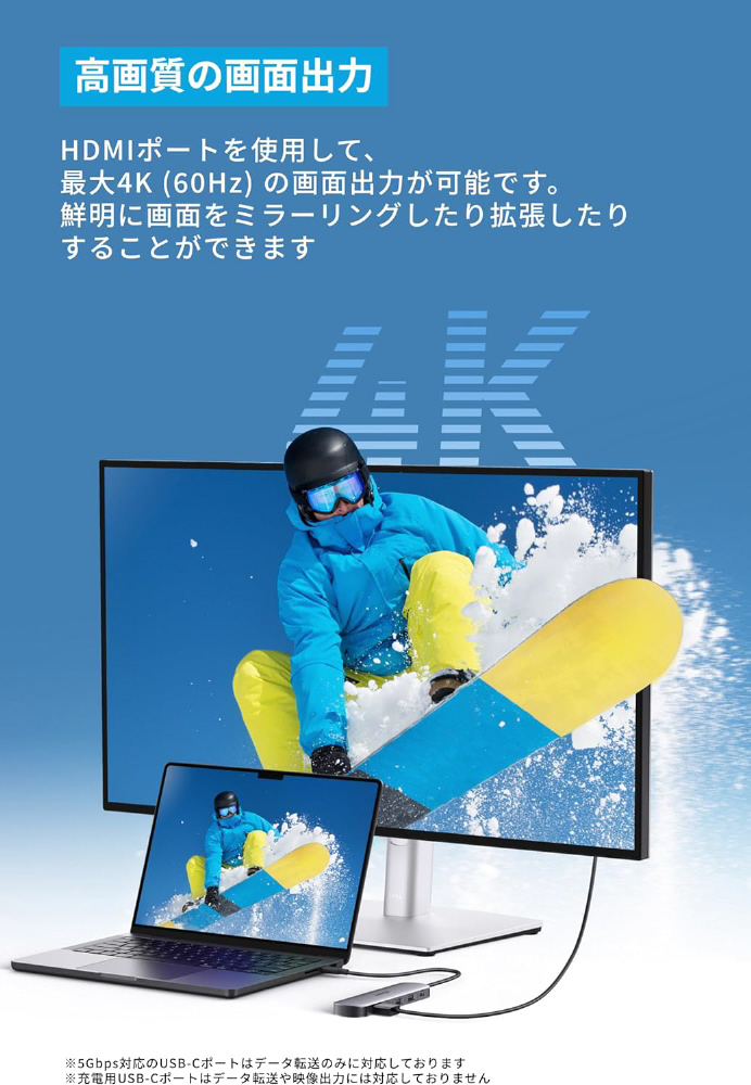 高画質の画面出力が可能な7-in-1USB-C ハブ