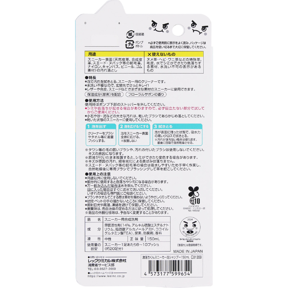 | 商品名 | 激落ちくんスニーカー泡シャンプー 150mL C01359 |
