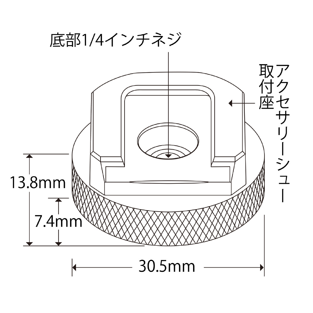 | 仕様1 | 【台座の寸法】直径 : φ30.5mm / 高さ : 7.4mm ※アクセサリーシュー取り付け座は含まず |