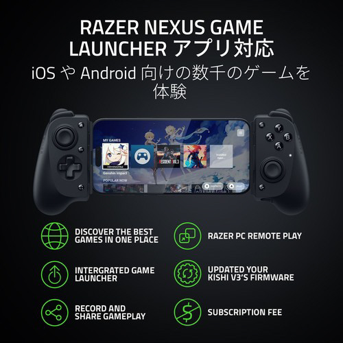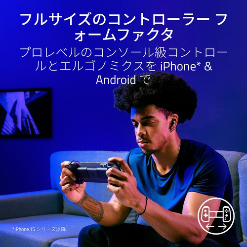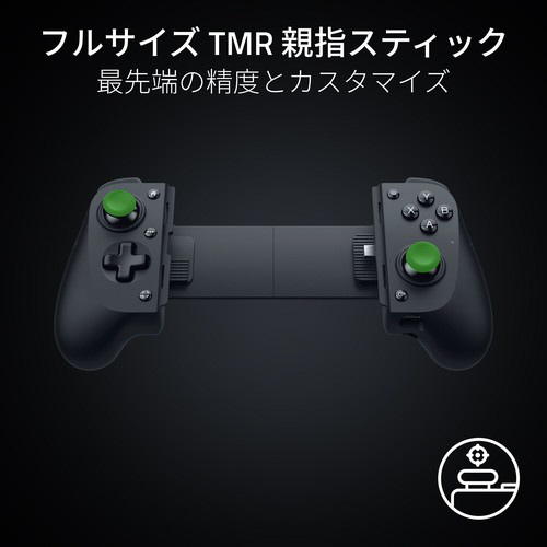 スマートフォンでコンソールクラスのゲームプレイ体験をもたらすフルサイズのコントローラー、Razer Kishi V3 で完全なモバイルゲーミングを体験。iPhone や Android 、PC向けに作られ、フルサイズの TMR 親指スティックとデュアルマウスクリックバックボタンで、プロレベルのコンソールコントローラーのエルゴノミクスとパフォーマンスを実現。