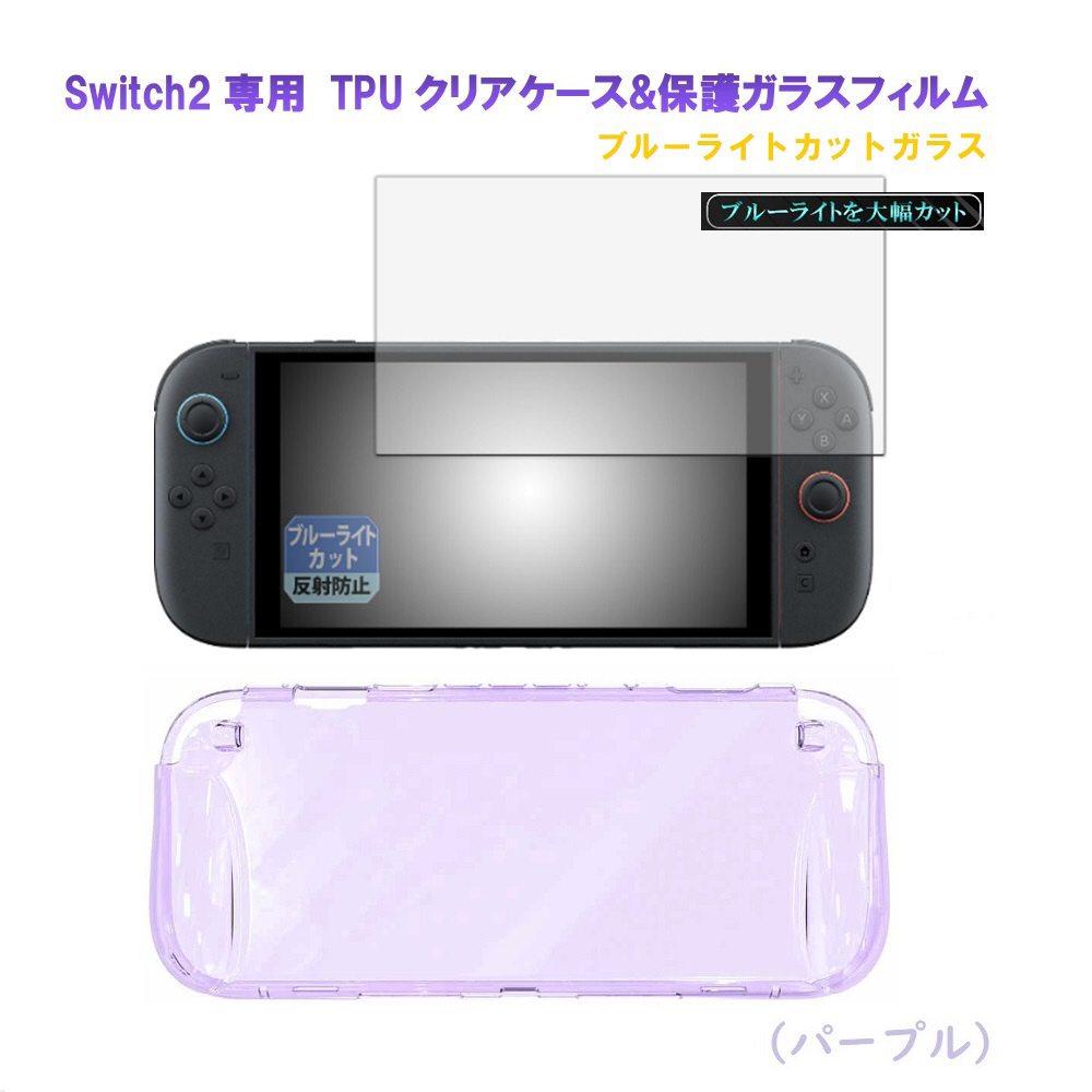 Switch2用 TPUクリアケース&ブルーライトカット保護ガラス(パープル)