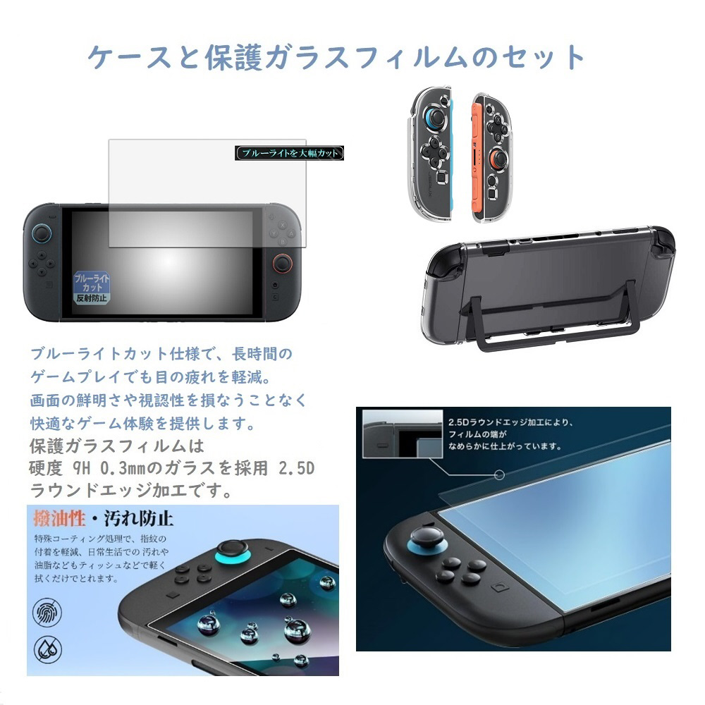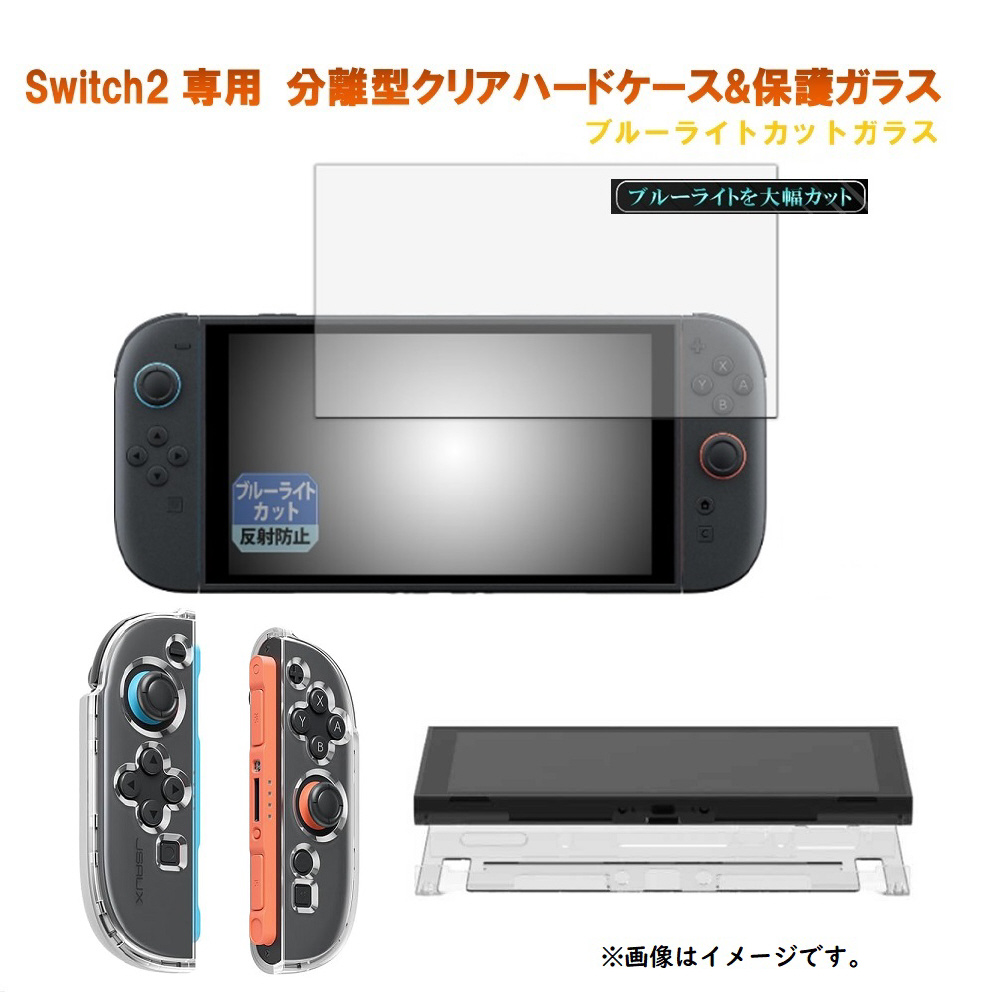 Switch2用 分離型クリアハードケース&保護ガラス(ブルーライトカット)