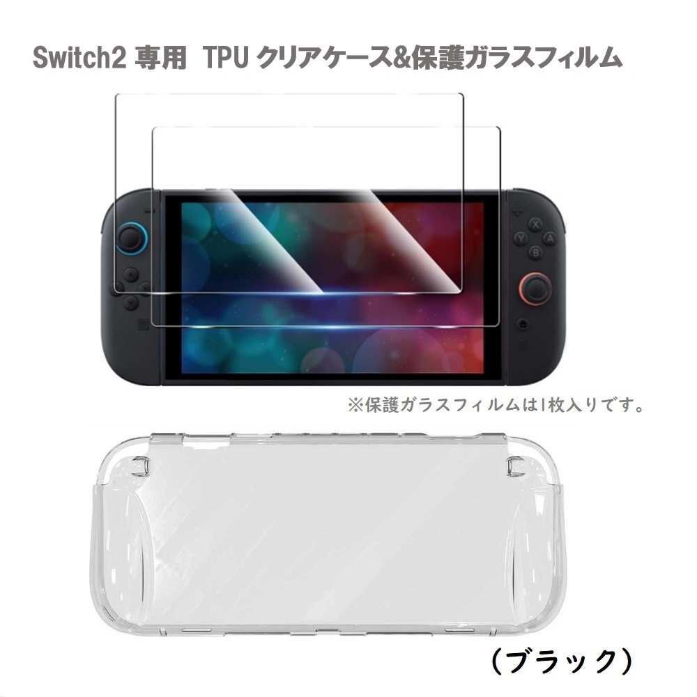 Switch2用 TPUクリアケース&保護ガラス(ブラック)