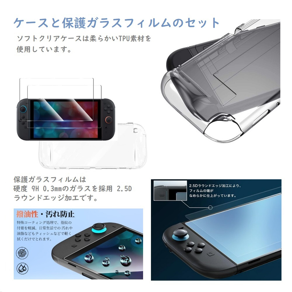スイッチ2用のソフトクリアケース&保護ガラス9Hのセットです。