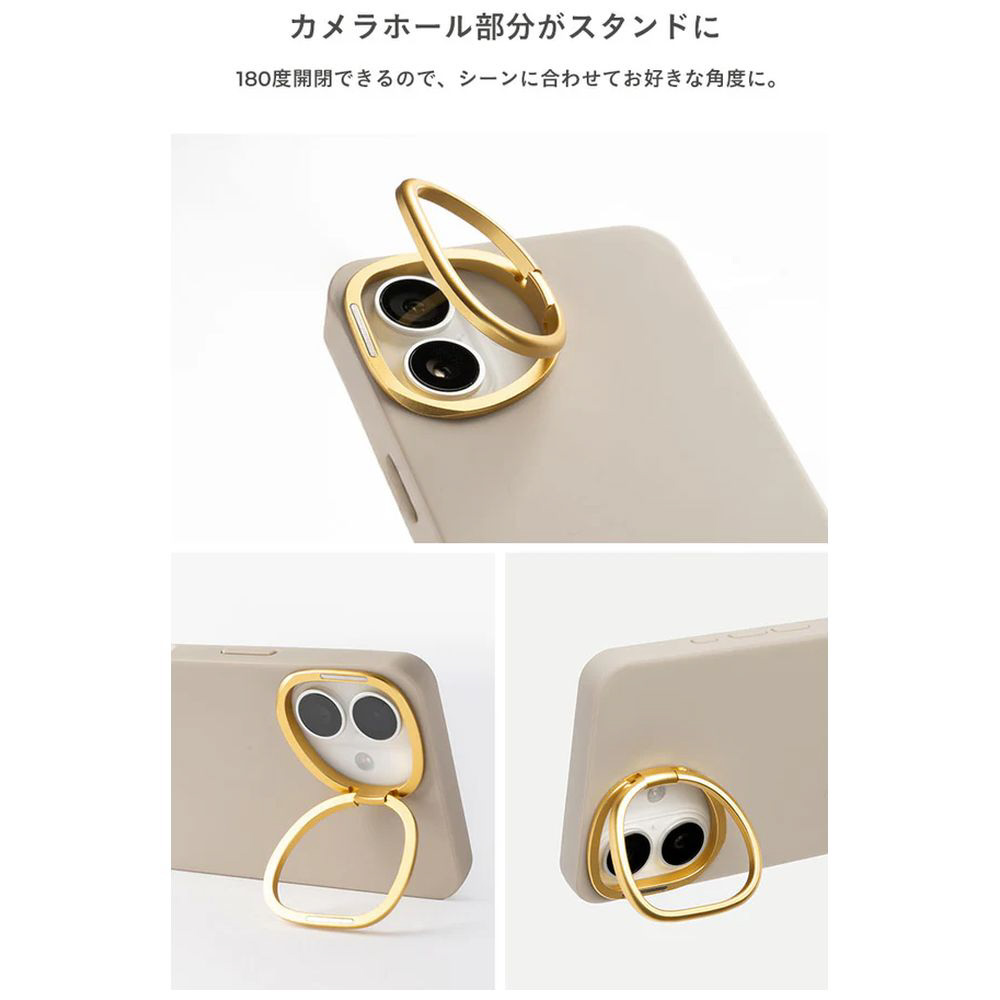 ゴールドのカメラホールがスタンドになるiPhoneケース。