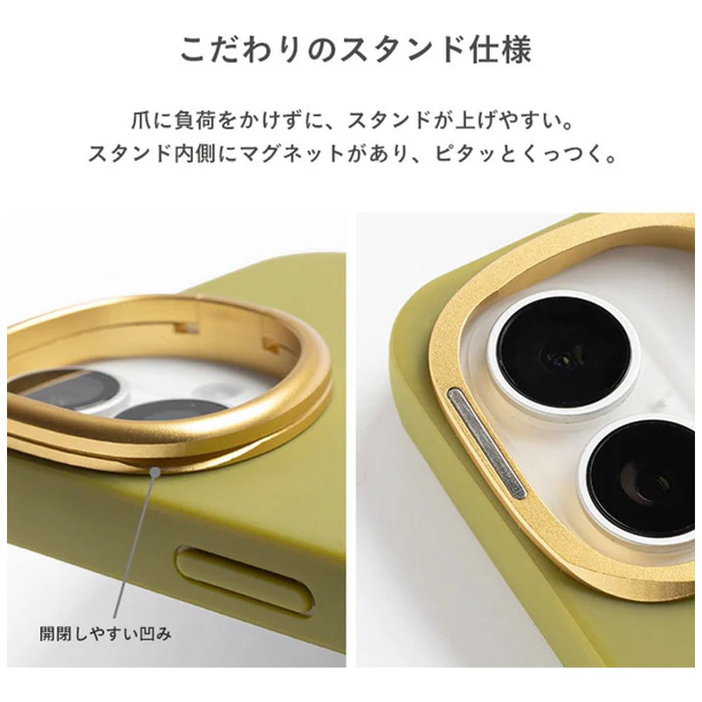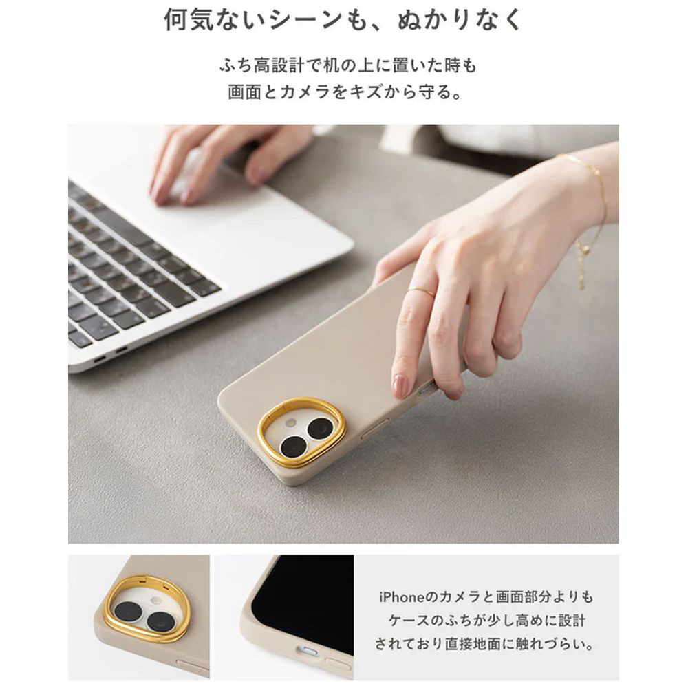 [iPhone 16専用]salistyカメラホールスタンド 耐衝撃ハードケース グレージュ 669-986707
