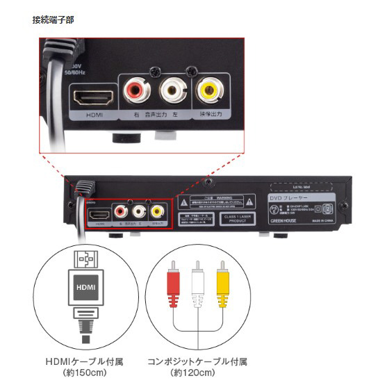 | 入出力端子 | HDMI ポートx1、USBポート×1、コンポジット(赤/白/黄)出力端子×1 |