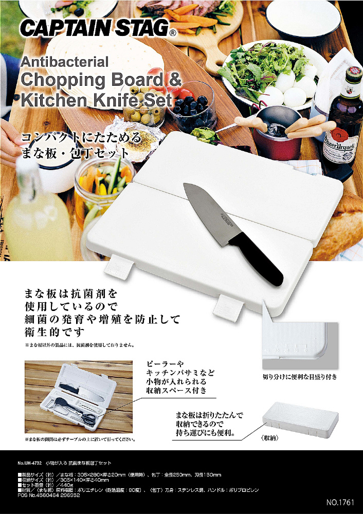 小物が入りコンパクトにたためる、抗菌まな板包丁セット。