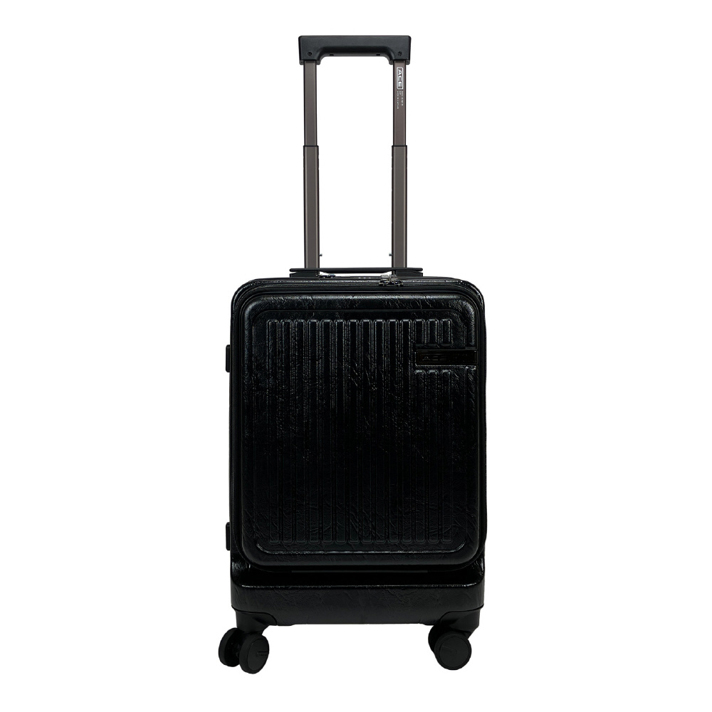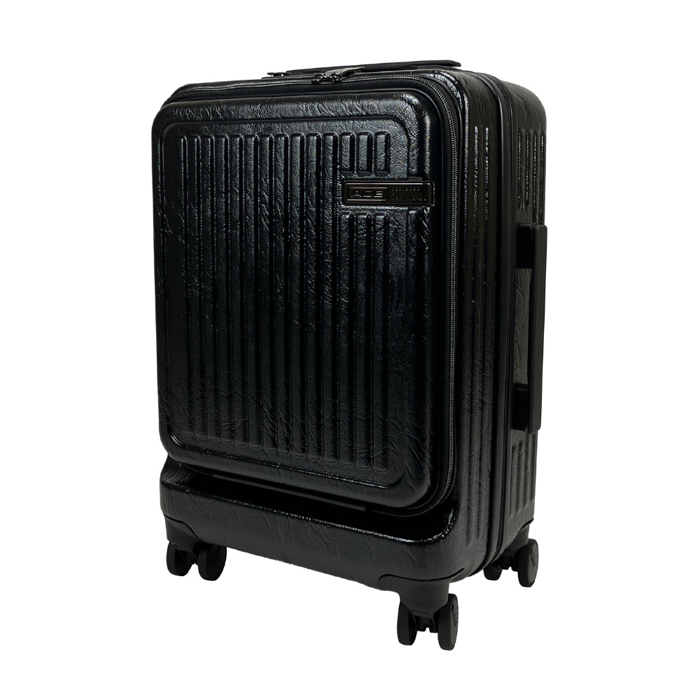 DESIGNED BY ACE IN JAPAN フロントオープンラゲージ 機内持ち込みサイズ レザーシボブラック ACE-548111 [TSAロック搭載]