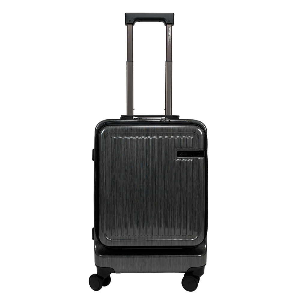 DESIGNED BY ACE IN JAPAN スーツケース フロントオープンラゲージ 機内持ち込みサイズ ヘアラインブラック ACE-548102 [TSAロック搭載]