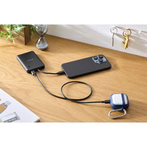 ケーブル一体型だから、思い立ったらすぐ使える。スマートフォンを使いながら充電するのに便利な、ケーブル一体型のモバイルバッテリーです。持ち運びに便利なコンパクトサイズで、最大12Wの出力。外出先での急なバッテリー切れの際も安心です。