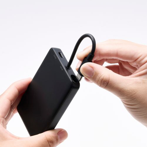 本体にケーブルが付属した、ケーブル一体型のモバイルバッテリーです。