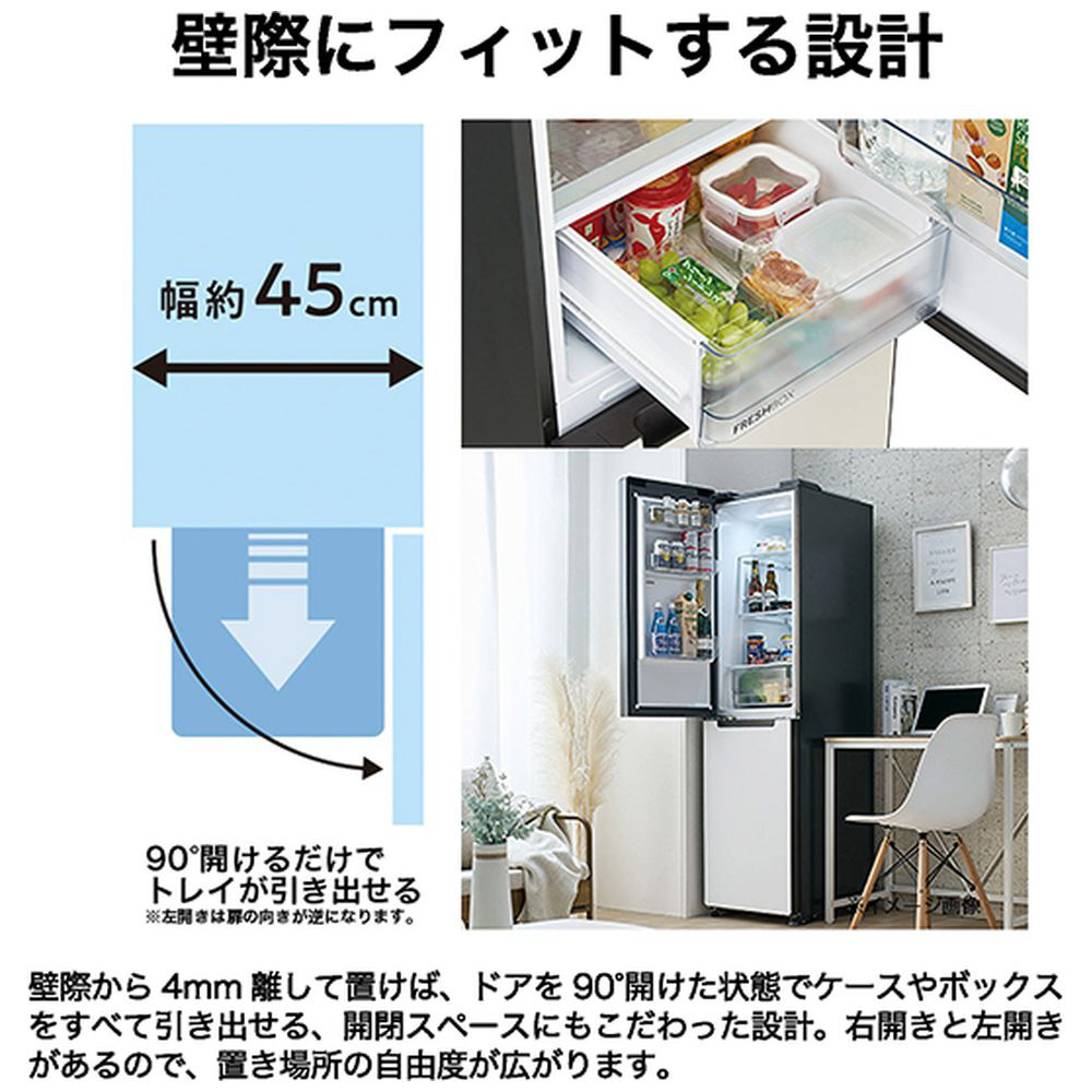 幅約45cmのスリムボディを実現した冷凍冷蔵庫です。
