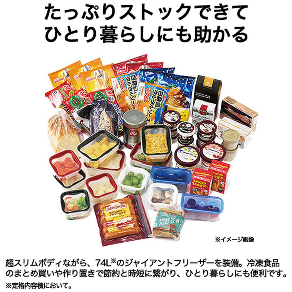 | 仕様2 | ストックに便利な大容量74L冷凍室 |