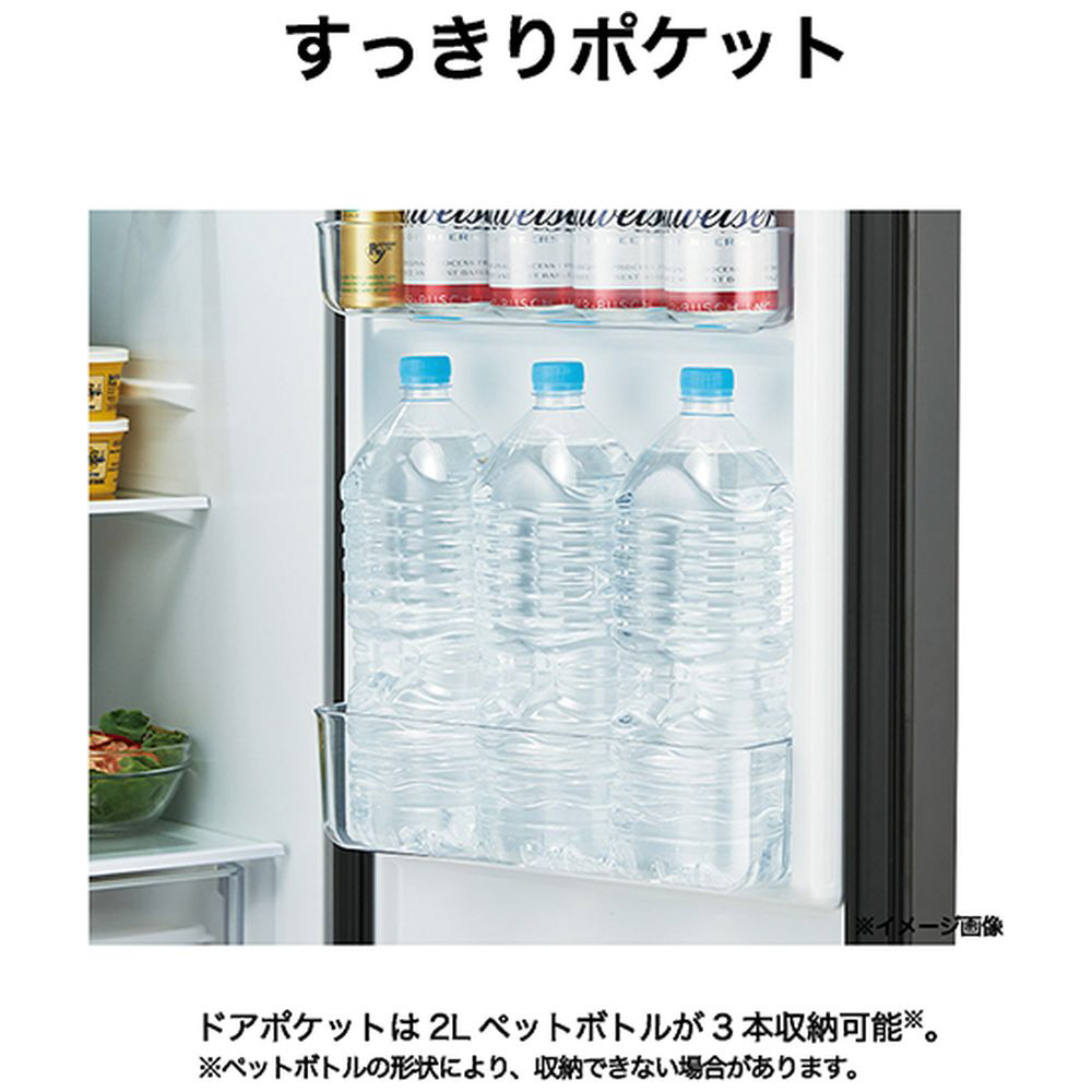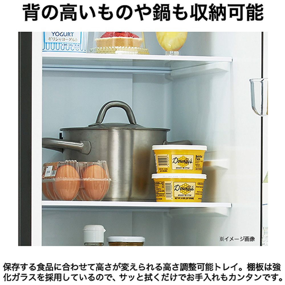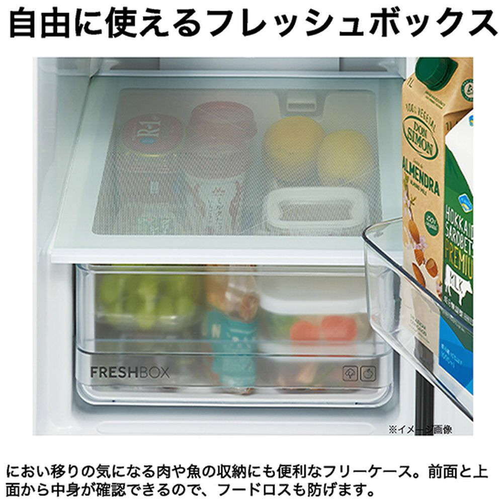 | 付属品 | フリーポケット(2)、ボトルポケット(1)、冷蔵室棚(3)、フレッシュボックス(1)、製氷皿(1)、冷凍室トレイ(2)、冷凍バスケット(1) |