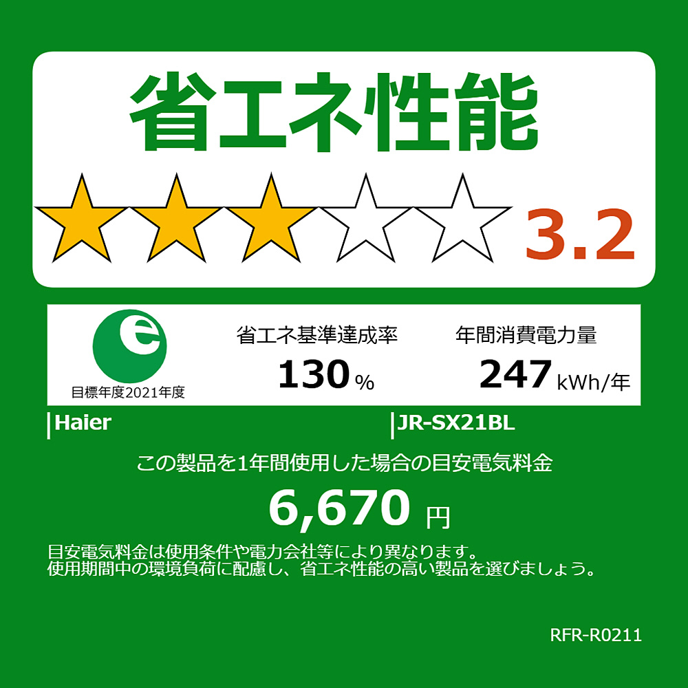 | 省エネ性能(目標年度2021) | ★★★☆☆ 3.2 |