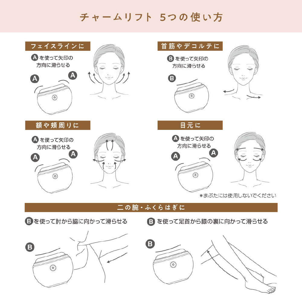 簡単のおうちエステで、ハリつやのある美しい自分へ。これ1台でフェイスからボディまでトータルケアできる「チャームリフト」。