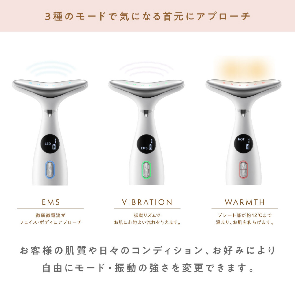 3種のモードで気になる首元にアプローチ。ぴったりフィットしやすい滑らかカーブ。