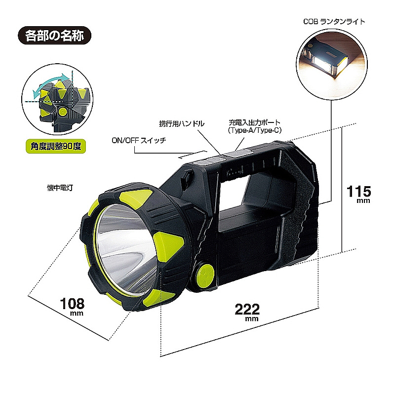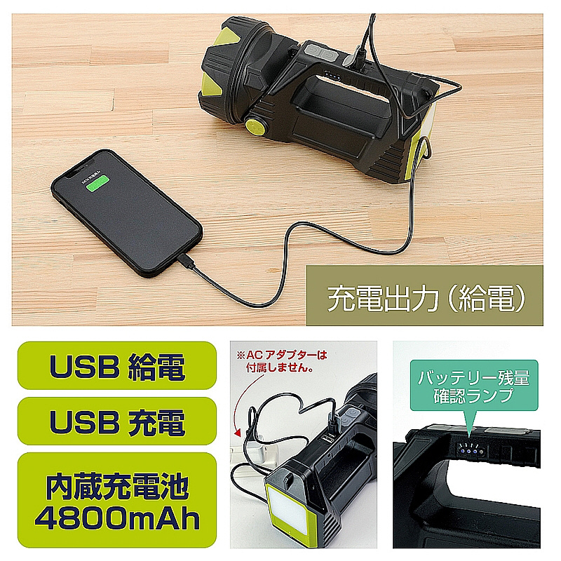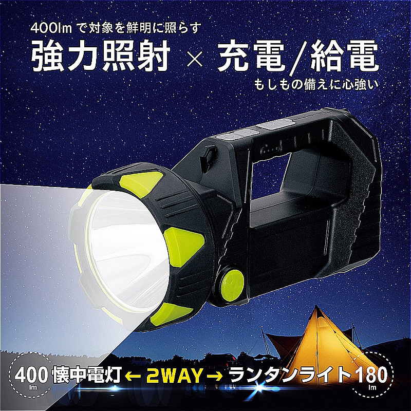 400?で対象を鮮明に照らす 強力照射×充電/給電で、もしもの備えに心強い